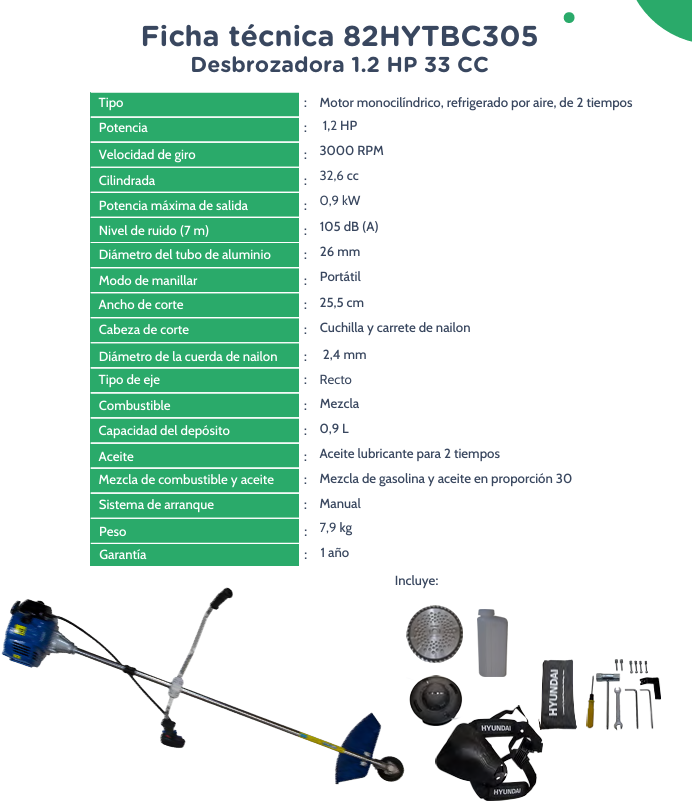 33cc Desbrozadora a combustión hyundai 33cc | 82hytbc305 $ 130.000 Precio con transferencia: $ 123.500 Agregar al carro Avísame cuando llegue
